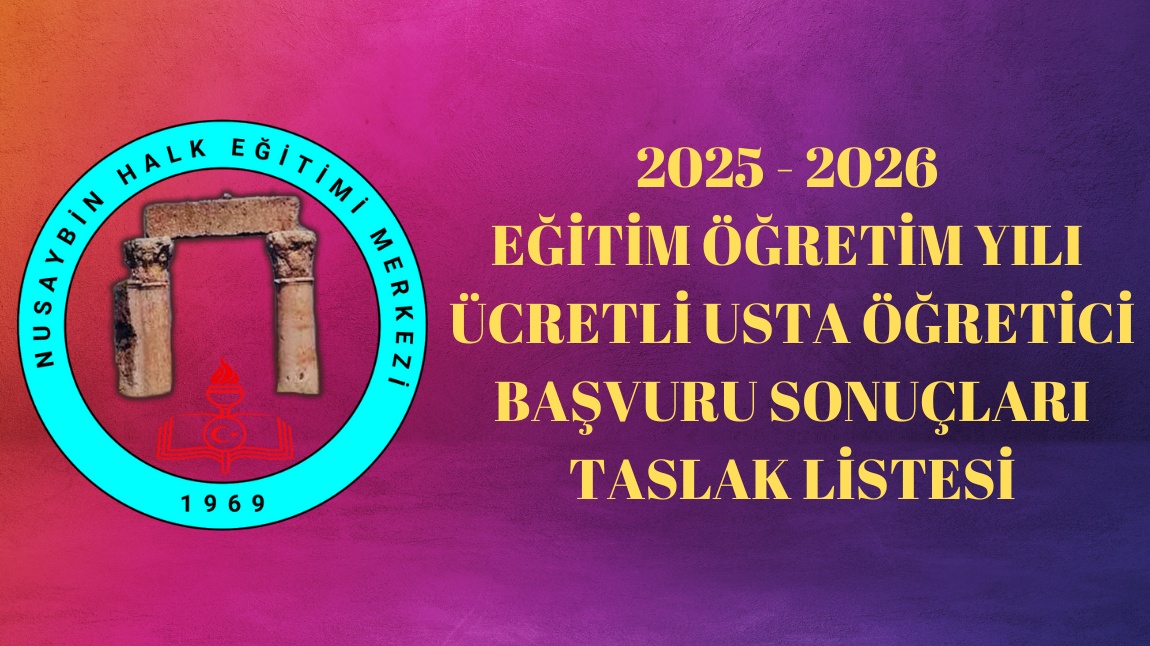 Nusaybin Halk Eğitimi Merkezine 2025-2026 eğitim-öğretim yılında görevlendirilmek üzere yapılan usta öğreticilere ait sıralamanın Taslak listesi belli olmuştur.